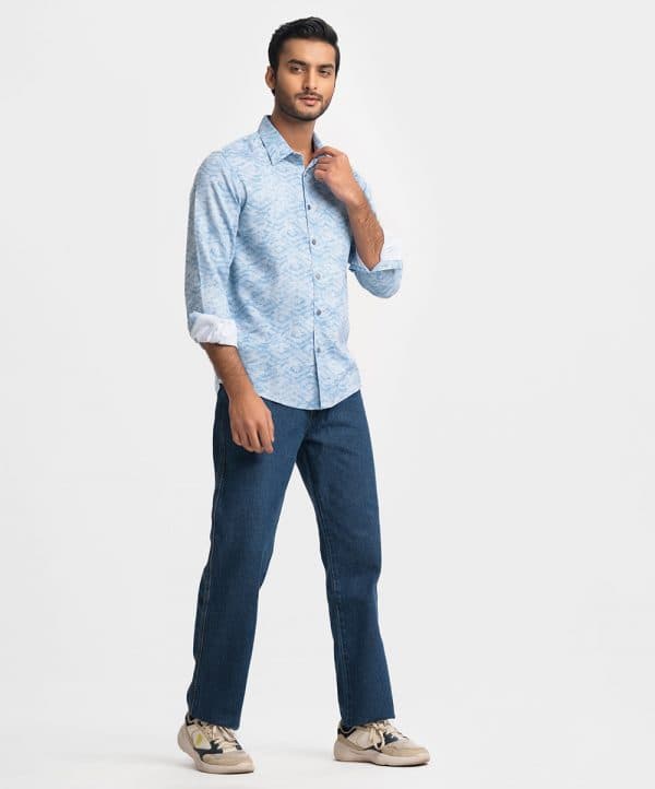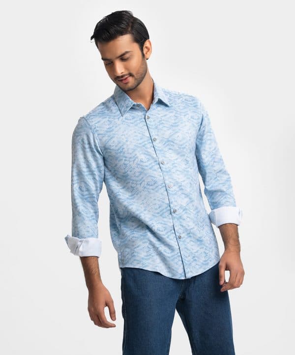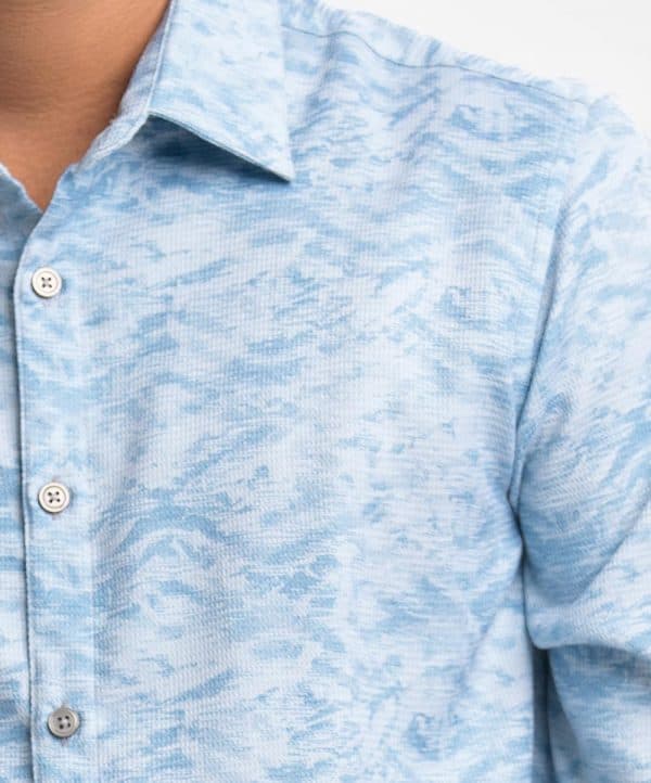 Long-sleeved business casual shirt in premium textured woven fabric. Classic collar, adjustable button on the cuffs.