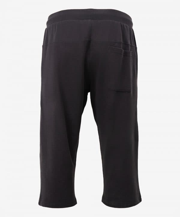 Men’s three-quarter bermuda pant in interlock knit fabric. Two zippers fly Side pockets with typography at the side. and one back pocket.