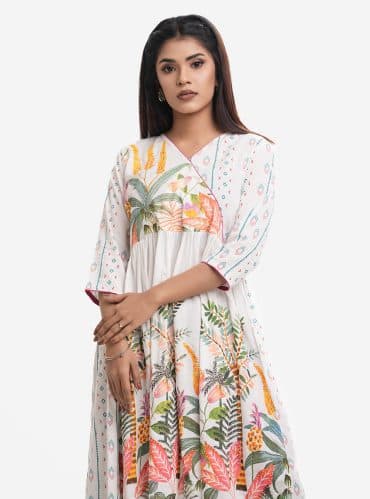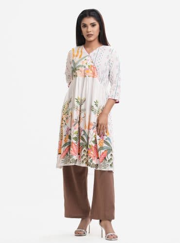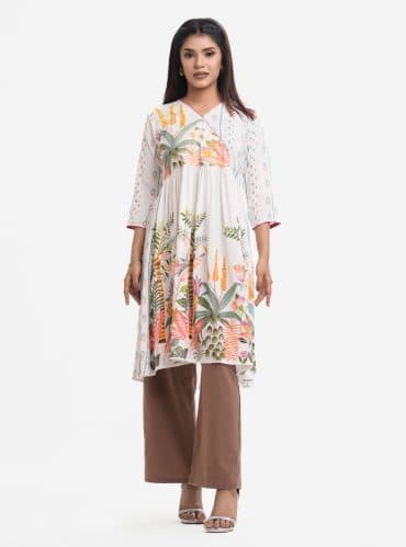 White Viscose A-line Long Tunic