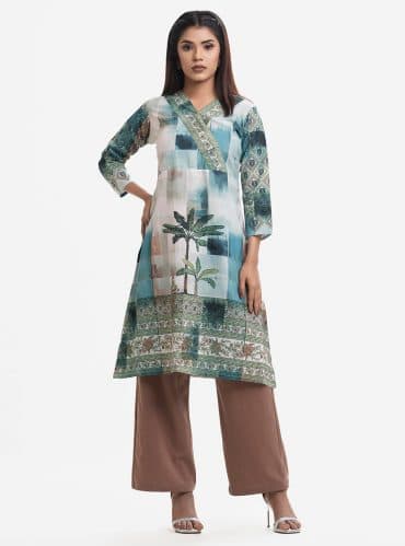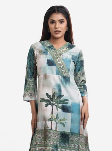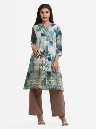Mint Stretchable Georgette A-line Tunic