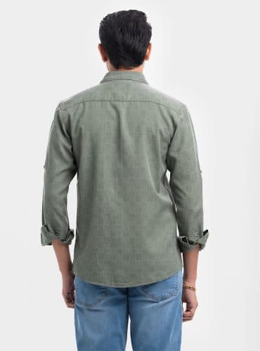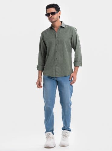Olive Green Cotton Long Sleeve Casual Shirt