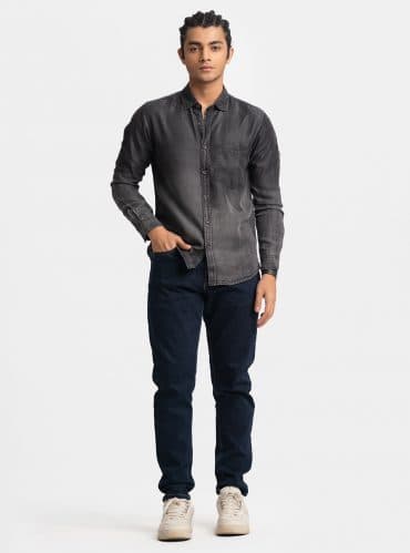 Black Denim Long Sleeve Casual Shirt
