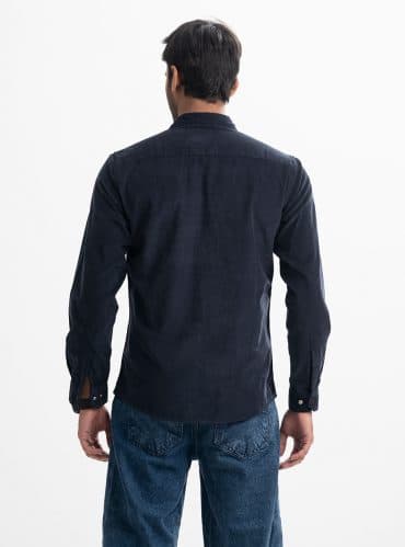 Blue Corduroy Long Sleeve Casual Shirt