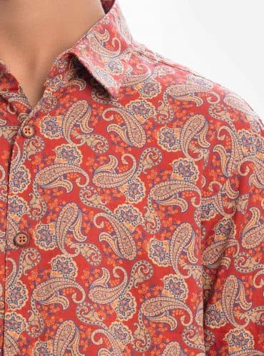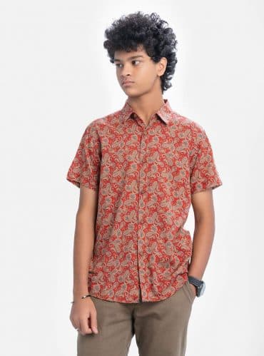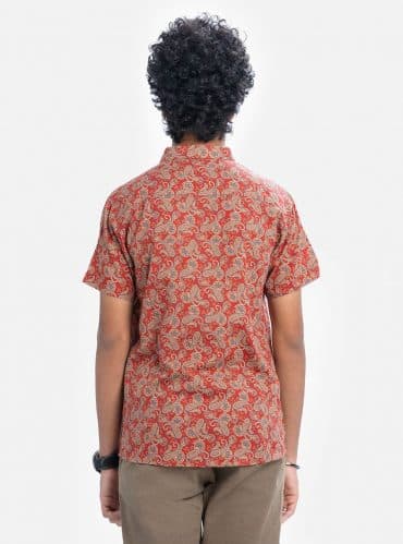 Red Cotton Short Sleeve Shirt