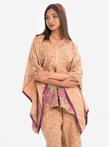 Beige Jacquard Abaya Style Top Bottom Set