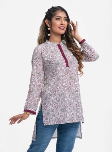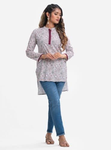 White Viscose High Low Hem Kameez
