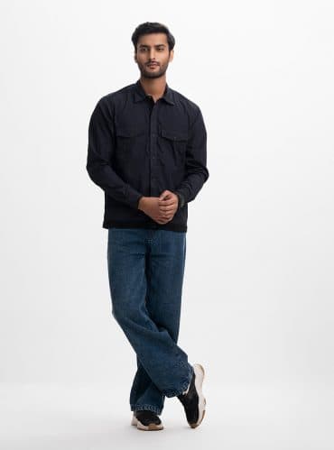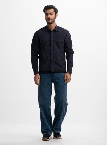 Black Blended Nylon Four-pocket Shacket
