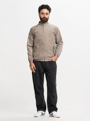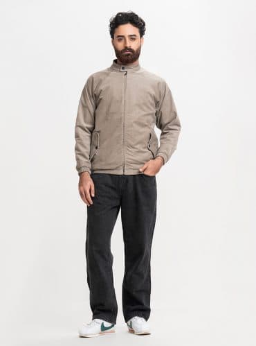 Khaki Cotton Blended Biker Jacket