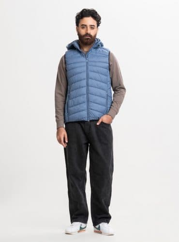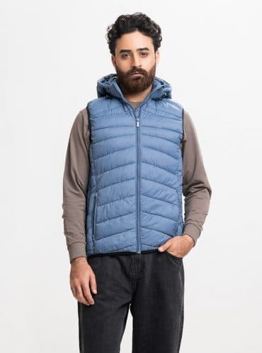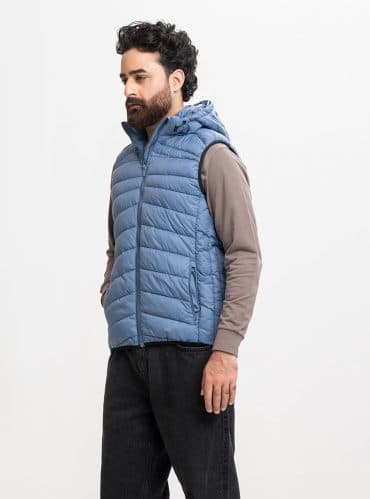 Blue Taffeta Sleeveless Puffer Jacket
