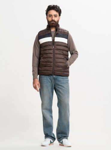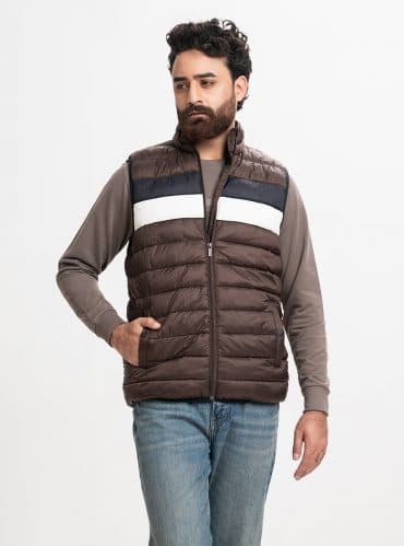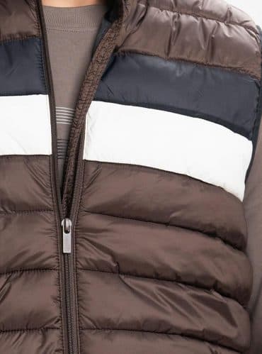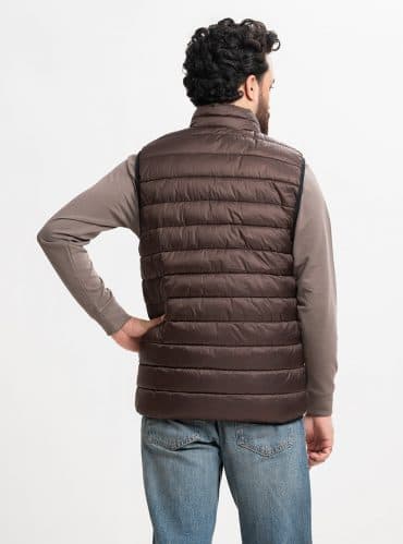 Brown Taffeta Sleeveless Puffer Jacket