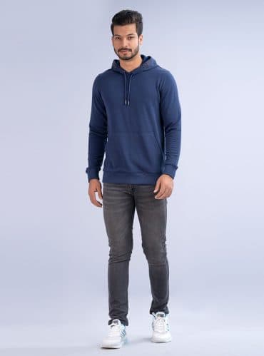 Black Interlock Knit Long Sleeve Hoodie T-Shirt