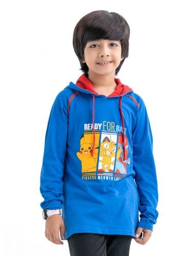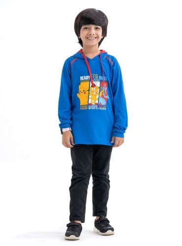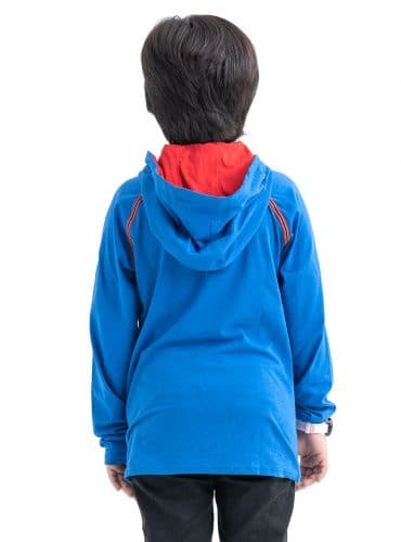 Blue Cotton Long Sleeve Hoodie T-Shirt