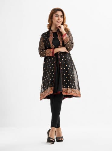 Black A-line Georgette Tunic with Shrug