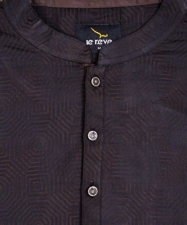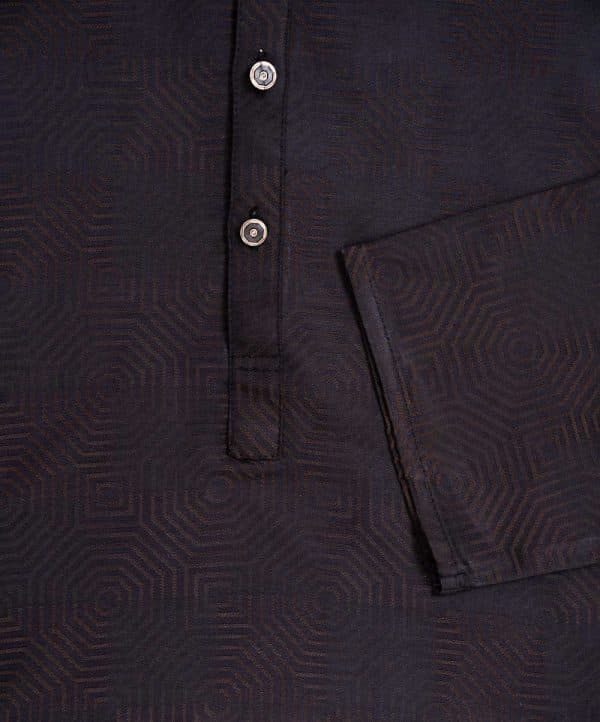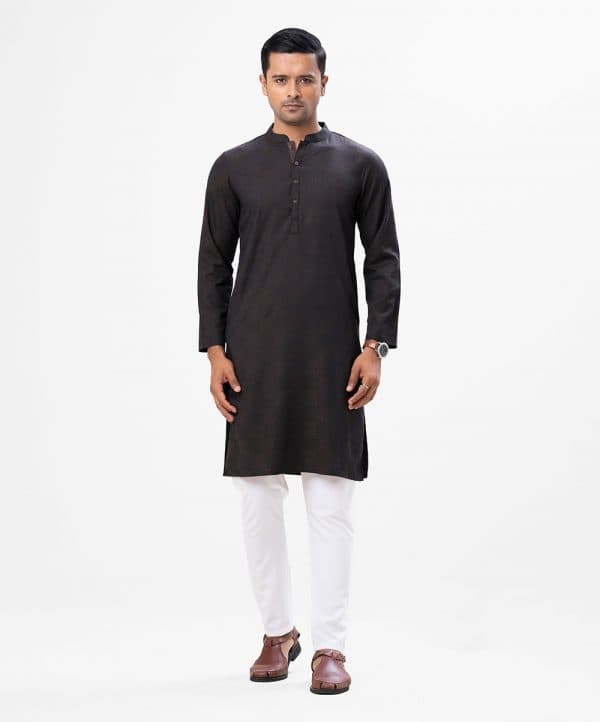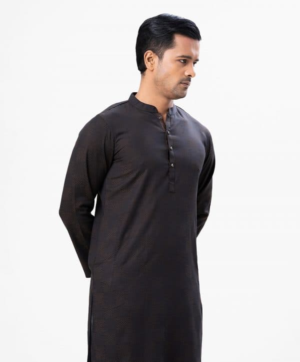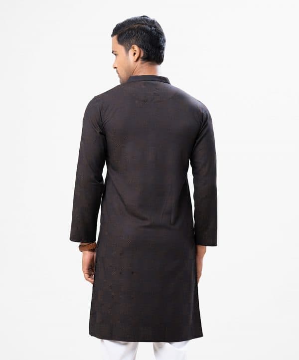 Men’s fitted panjabi in Jacquard cotton fabric. Mandarin collar and inseam pockets.