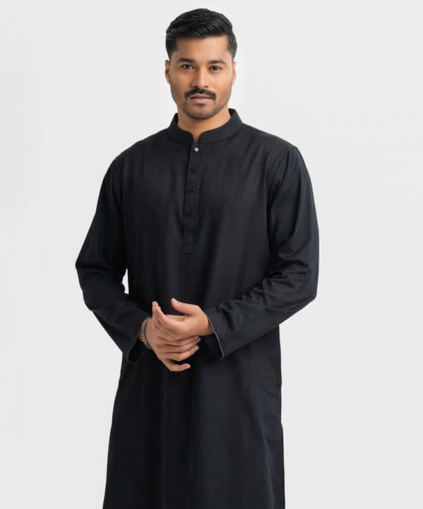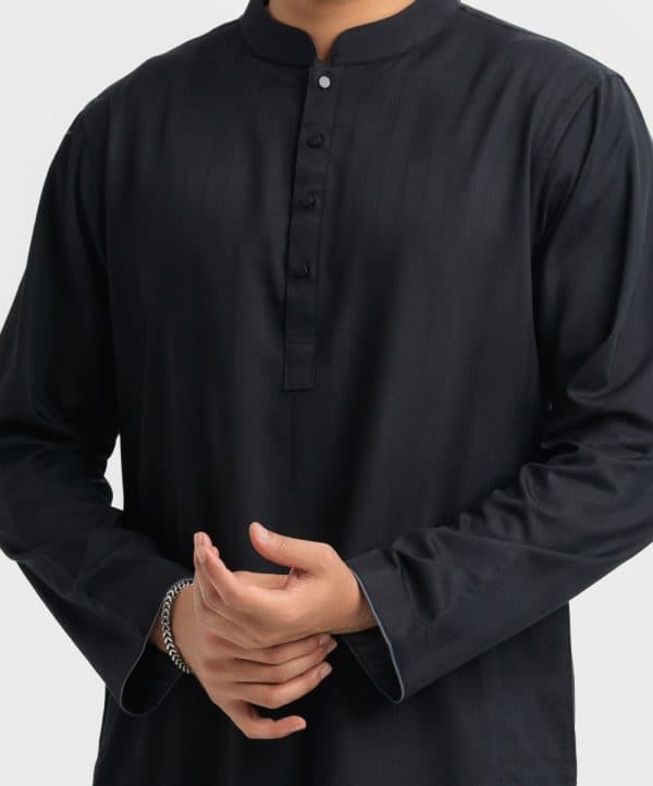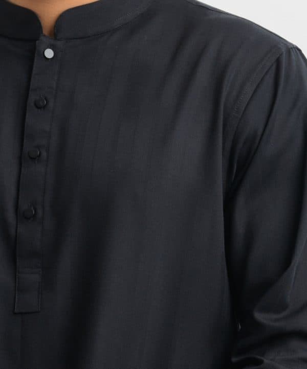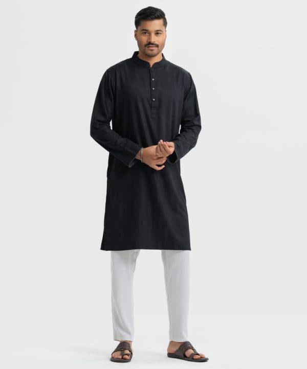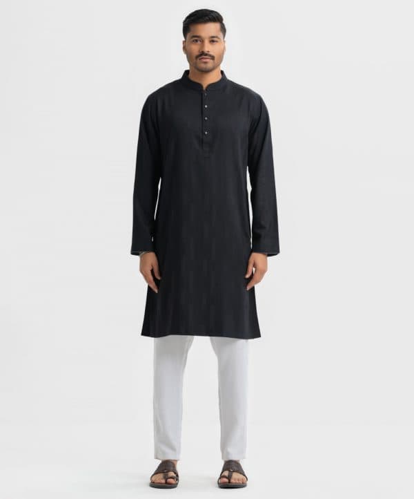 Black Jacquard Slim-fitted Panjabi