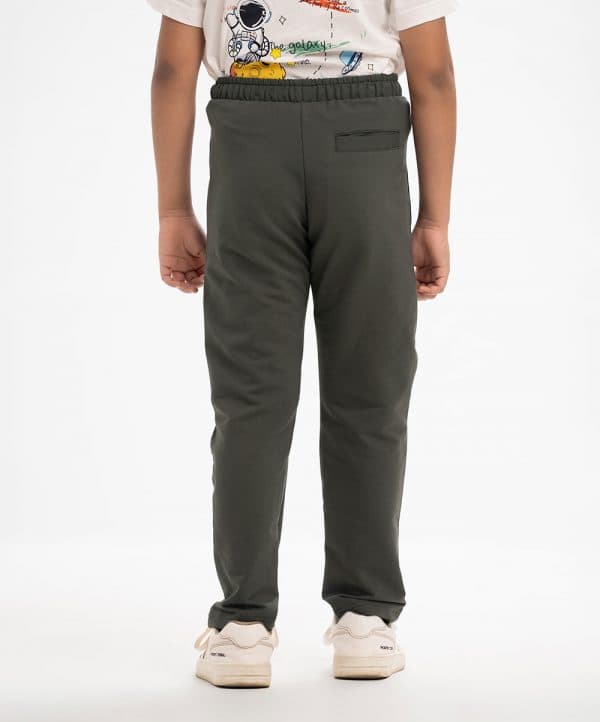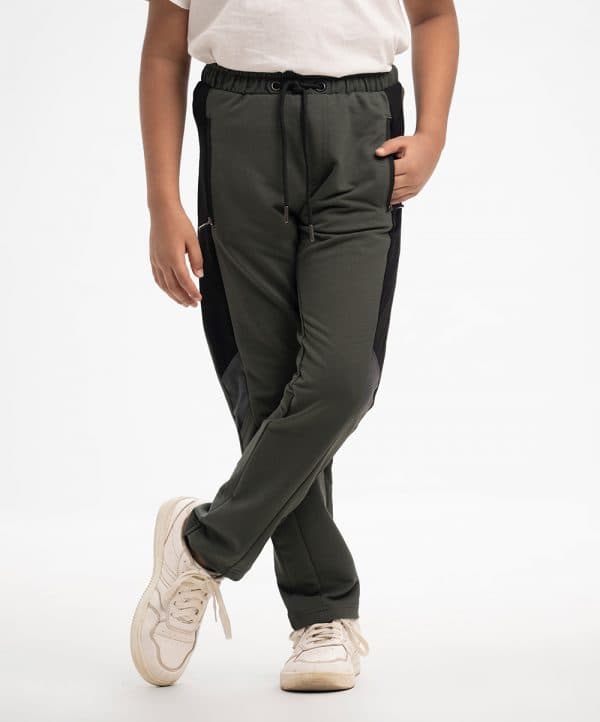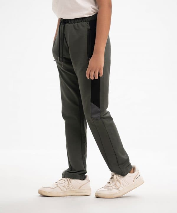 Panneled long track pant in interlock knit fabric.Closed side pockets with a patch pocket on the back. Elasticated waistline with an adjustable drawstring.