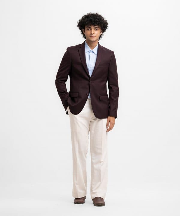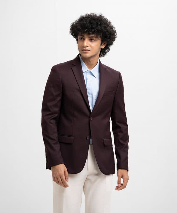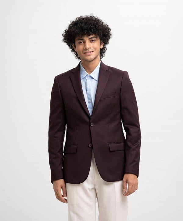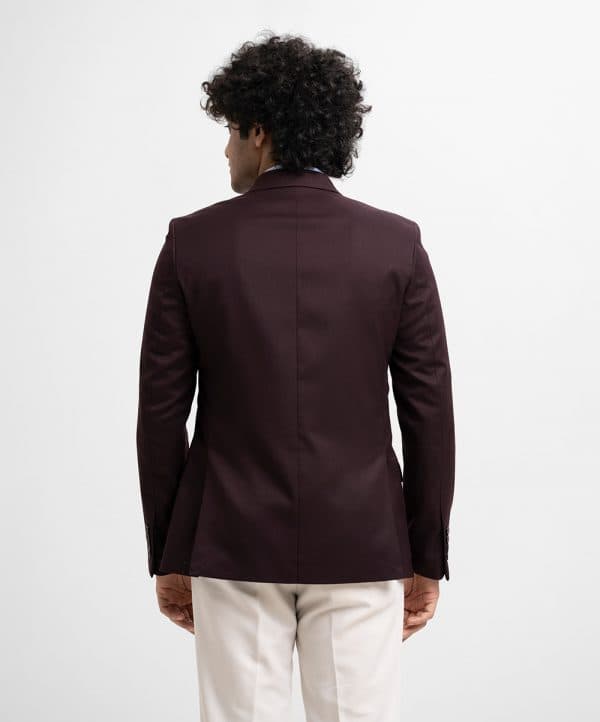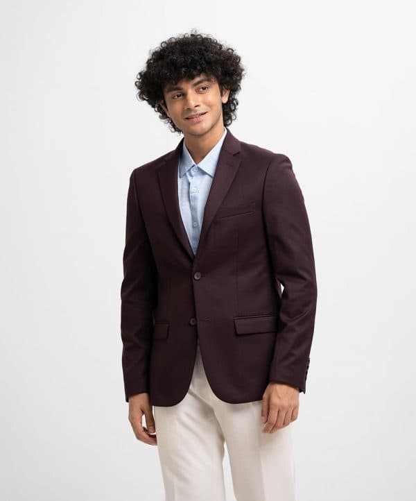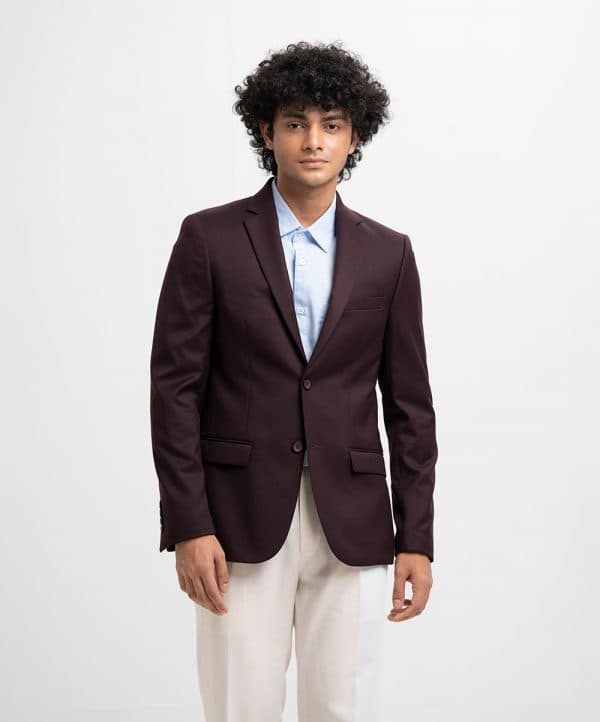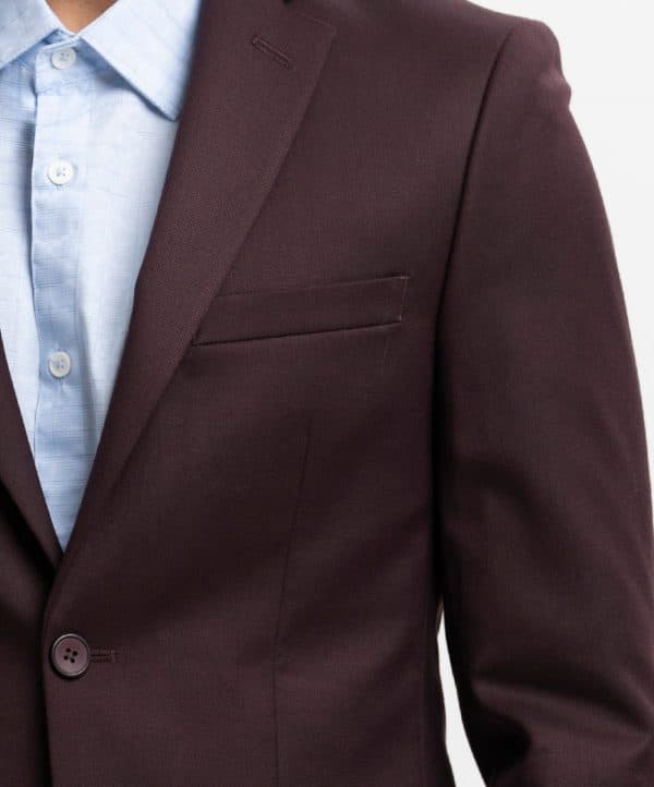 Slim-fit, single-breasted business formal blazer in soft, woven fabric with a stretchable silhouette. Notched lapels with a decorative buttonhole, two buttons at front, and decorative buttons at cuffs. Welt chest pocket, front pockets with flap and inner pockets. Lined.