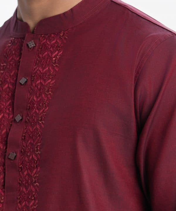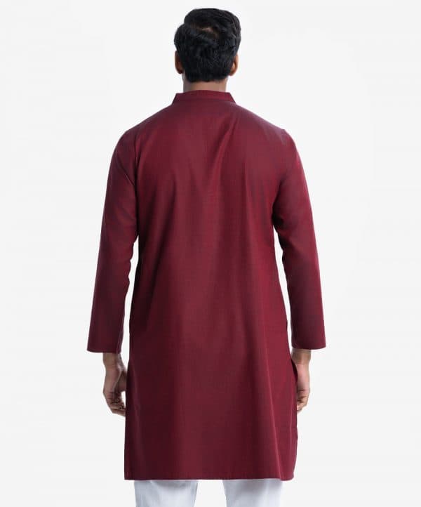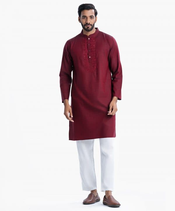 Men’s premium panjabi in two-tone cotton fabric.Mandarin collar and inseam pockets. Karchupi at the front.