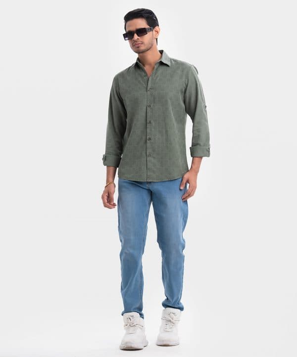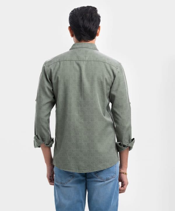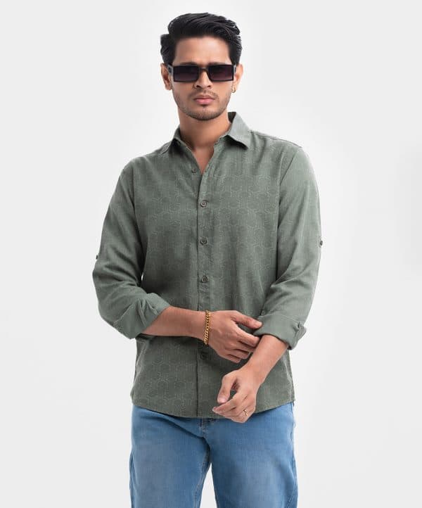 Men’s printed casual shirt in cotton fabric. Classic collar, cuff sleeves. Buttons fastening at front and hidden buttons.