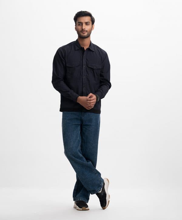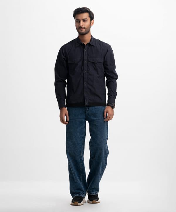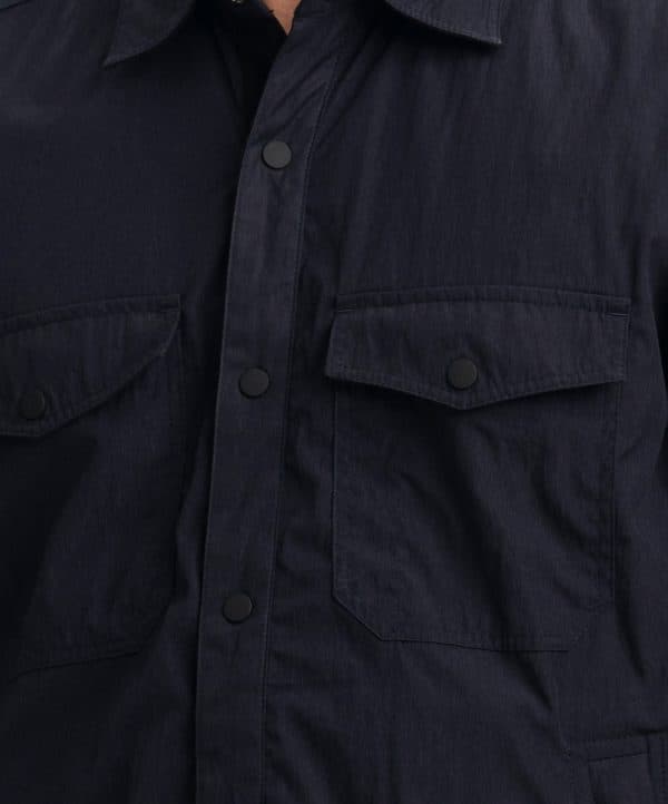 Four-pocket shacket in Black Blended Nylon fabric. Classic collar, full sleeves with adjustable buttons.