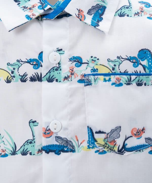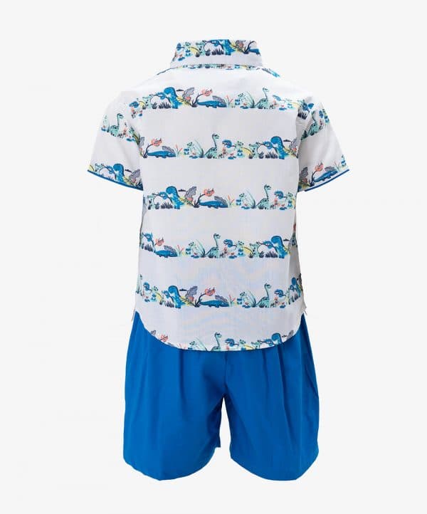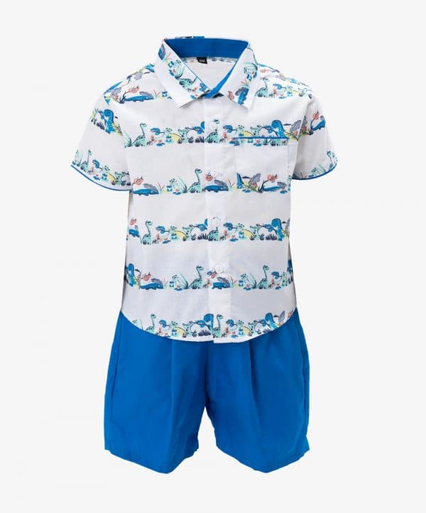 Newborn baby boys shirt pant set in cotton fabric. Classic collar, short-sleeved. Button fastening at the front and a chest pocket. Paired with baby pants.