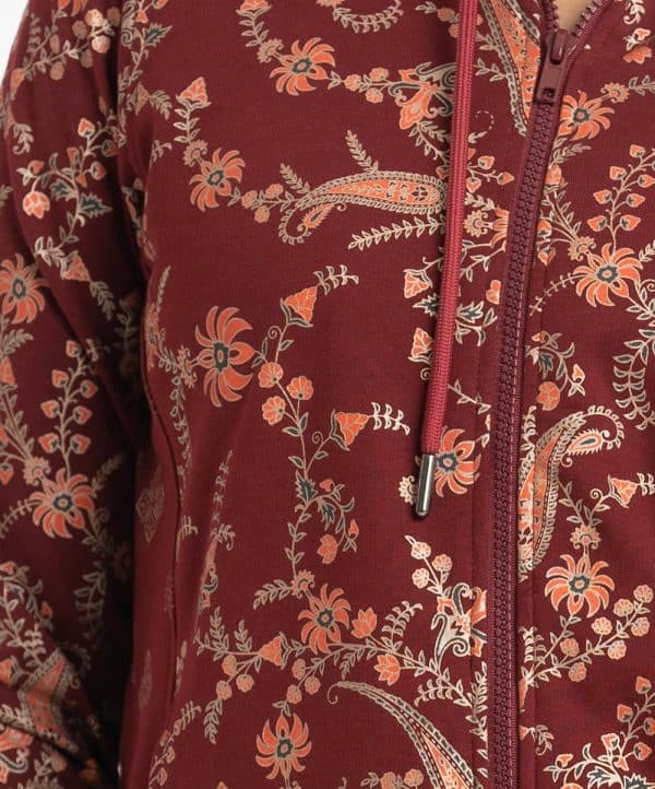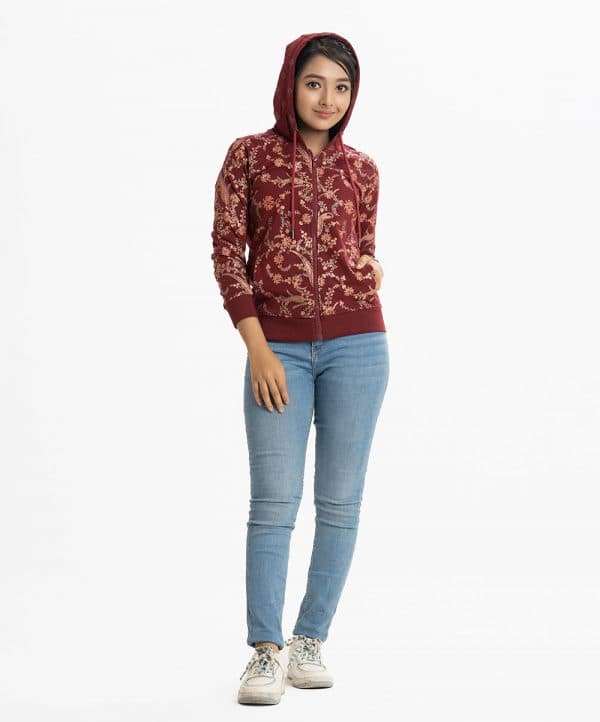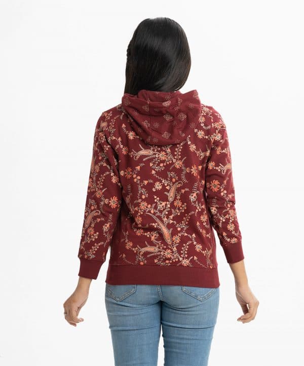 Teen girls printed hoodie sweat shirt in french terry fabric.. Adjustable drawstring at hood. Full sleeves and all-over floral print.