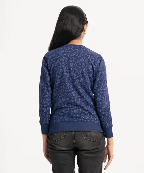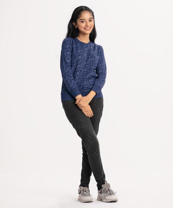 Teen girl’s floral printed sweatshirt in terry fabric. Round collar, full sleeves, and a straight hem. Featuring narrow ribbing at the cuffs, and hem.