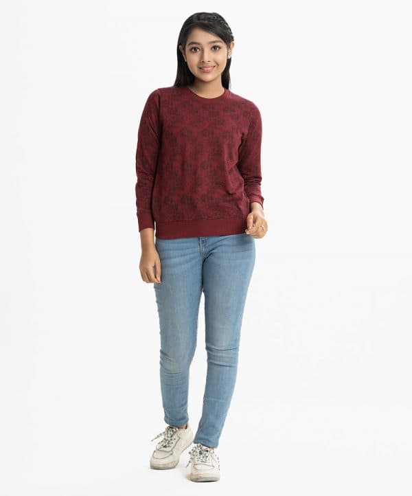 Teen girl’s printed sweatshirt in terry fabric. Round collar, full sleeves, and a straight hem. Featuring narrow ribbing at the cuffs, and hem.