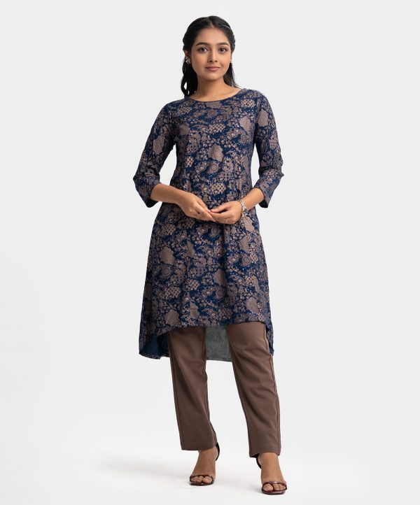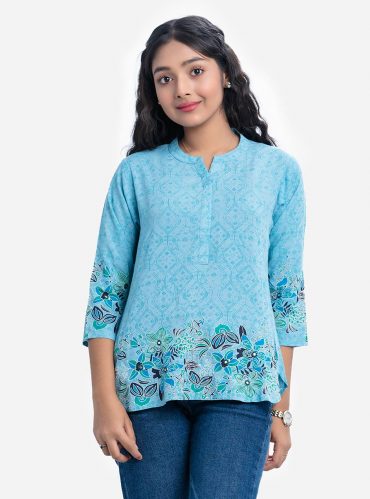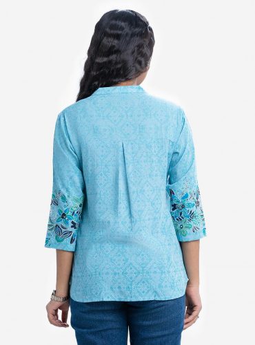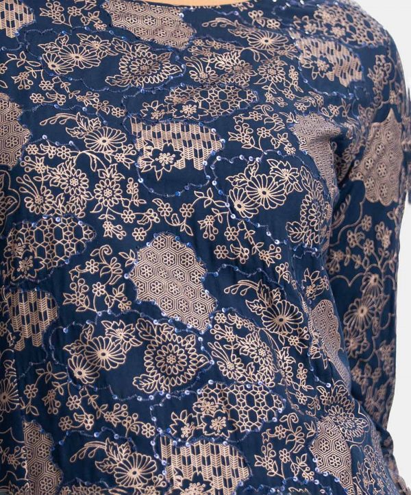 Boat neck A-line tunic in viscose fabric. Sequin details at the front. Three-quarter sleeves.